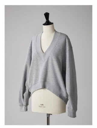 Vネック-ライトグレー / S
